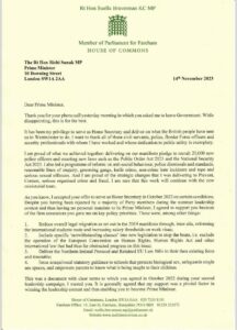 As you know, I accepted your offer to serve as home secretary in October 2022 on certain conditions.