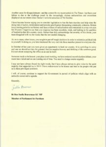 If we lose in the supreme court, an outcome that I have consistently argued we must he prepared for, you will have wasted a year and an act of parliament, only to arrive back at square one. Worse than this, your magical thinking – believing that you can will your way through this without upsetting polite opinion – has meant you have failed to prepare any sort of credible plan B. I wrote to you on multiple occasions setting out what a credible plan B would entail, and making clear that unless you pursue these proposals, in the event of defeat there is no hope of flights this side of an election. I received no reply from you.